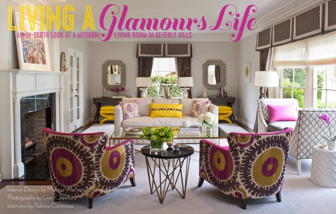 Living a glamorous life… I’m adoring the white background sprinkled in with an array of pattern and color. Both the yellow and the pink have been pulled by the two chairs and well mixed in with just the right amount of color.