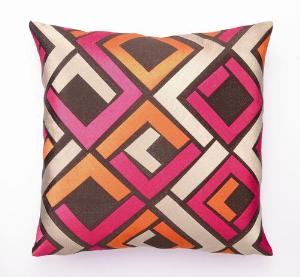 The first is the Trina Turk Avenida Maze Pillows in pink, brown, orange and white.  I found this from The Clayton Gray Home website.  Instantly fell in love with the colors and geometric shape.